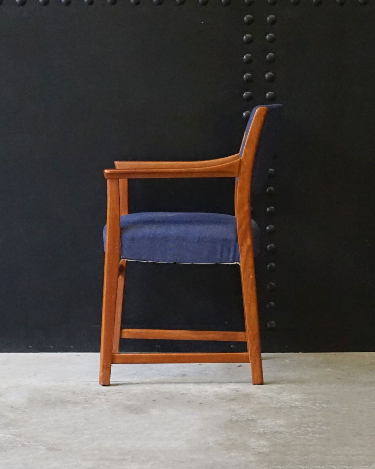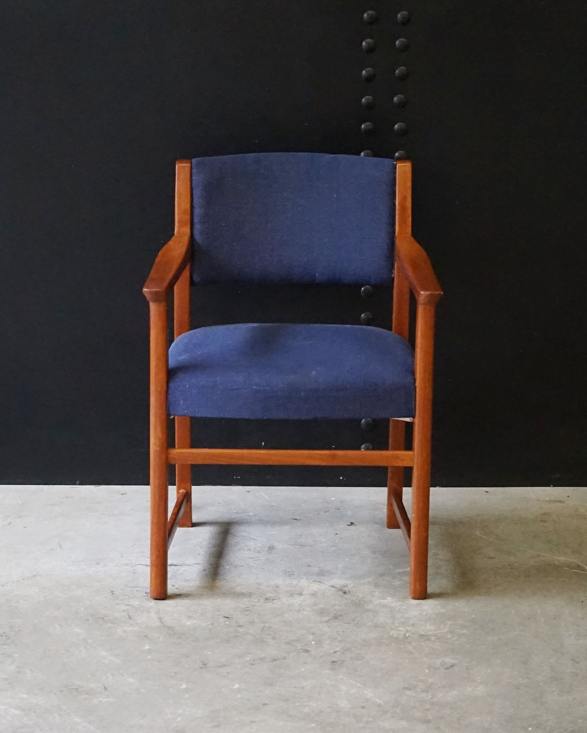 Refurbished & covered with thick navy blue cotton material, which can also serve as a base for a fabric of your choice. Stylish & sturdy, made in the 70s - 80s with all the quality you would expect from ship's furniture that has to endure several years on the high seas. The seat height is 49cm.